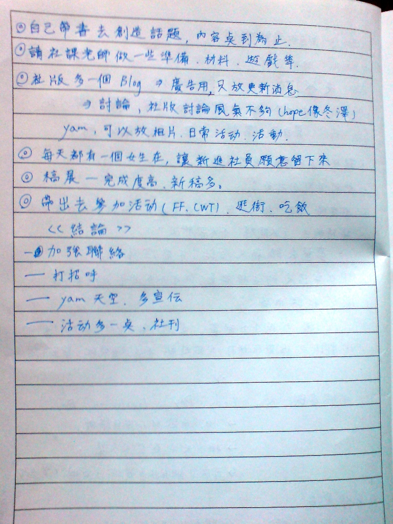 近來我從「各種管道」收到社員們的意見了(老人.噗浪.等)