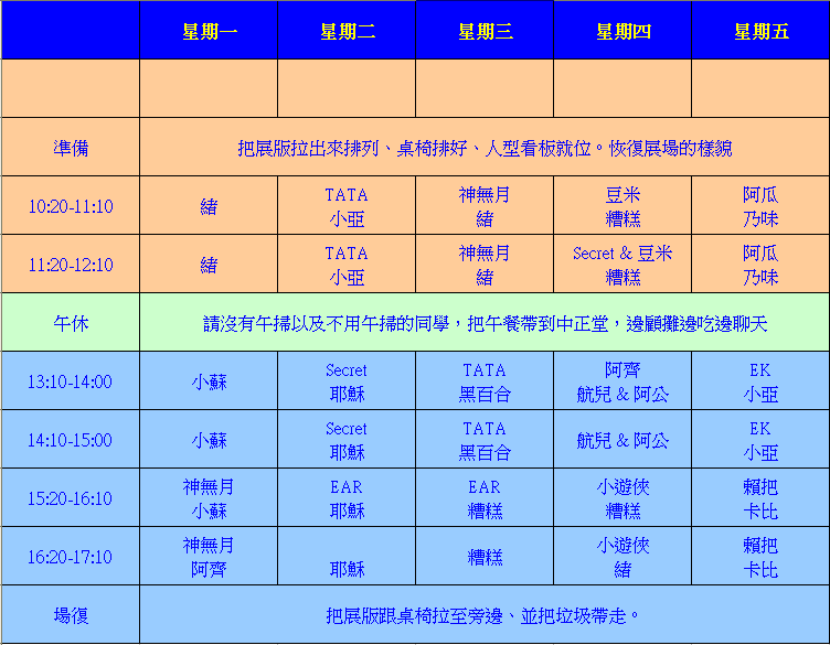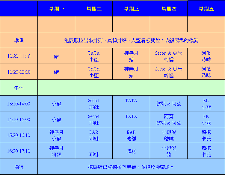 卡比: 所以星期四中午需要人手.把展版再拉開一點.方便讓人走動 (pvt/oPTE 09/11/30 01:06)